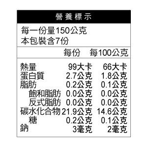 食品過敏原資訊:本產品與其它含有蝦、蟹、花生、牛奶、堅果類、蛋、魚類、豆、麥的產品於同一生產線生產,食物過敏者請留意。