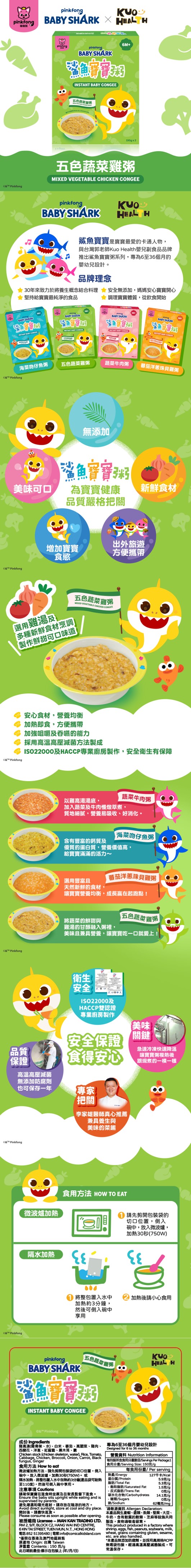 Baby Shark - 鯊魚寶寶粥x KUOHEALTH 五色蔬菜雞粥 (150克x2包/盒)