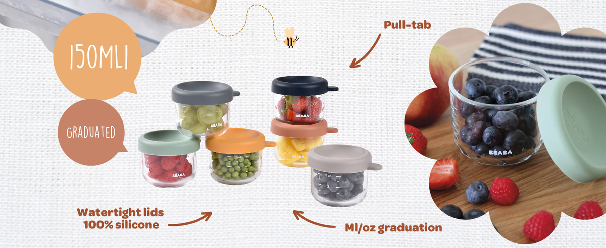 (快閃優惠 - 銀行轉賬或轉數快, 輸入優惠碼BEABA可享5%即時回贈!)BEABA - 玻璃食物儲存器 150ml 2 件裝 (鼠尾草綠 / 灰色)
