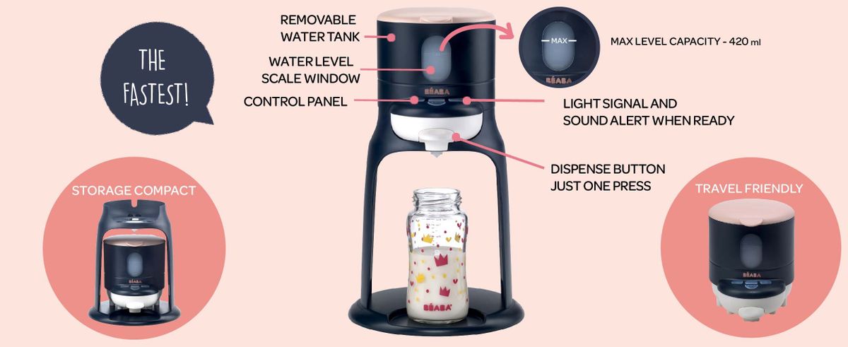 › 只需簡單一按即可將熱水注入到奶瓶中:實用且易於使用。
