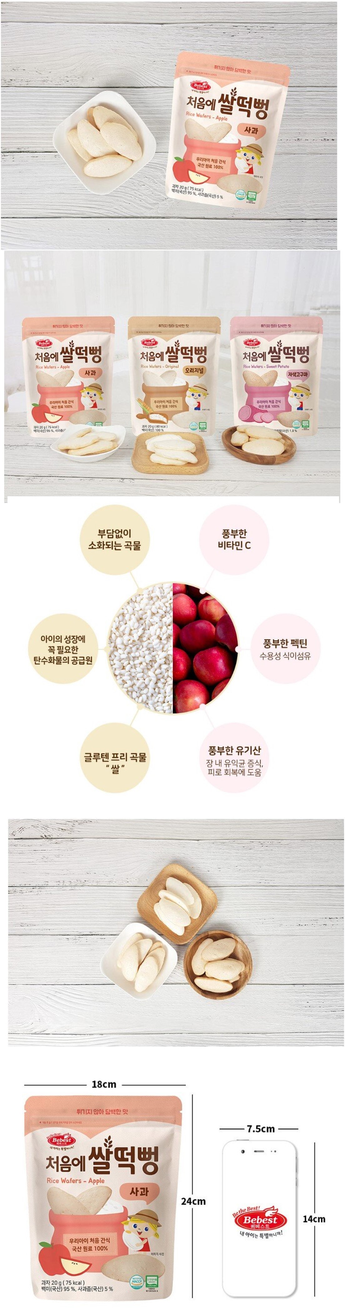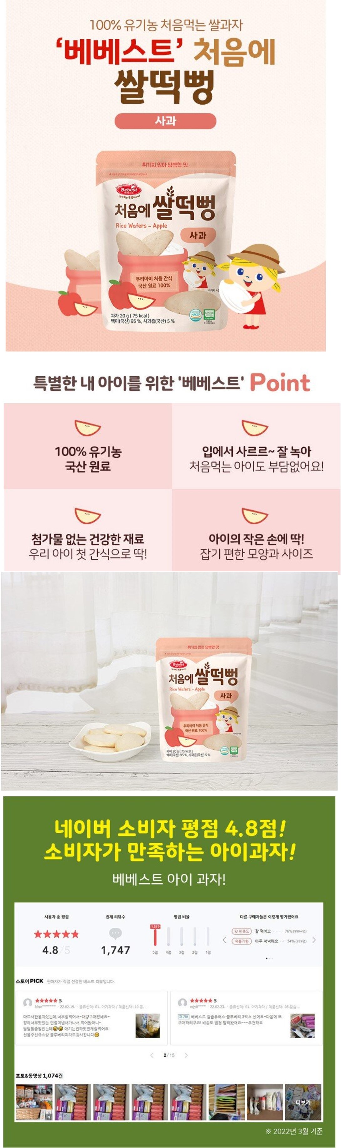 韓國 Bebest-嬰兒有機米餅(蘋果) 20g 6m+