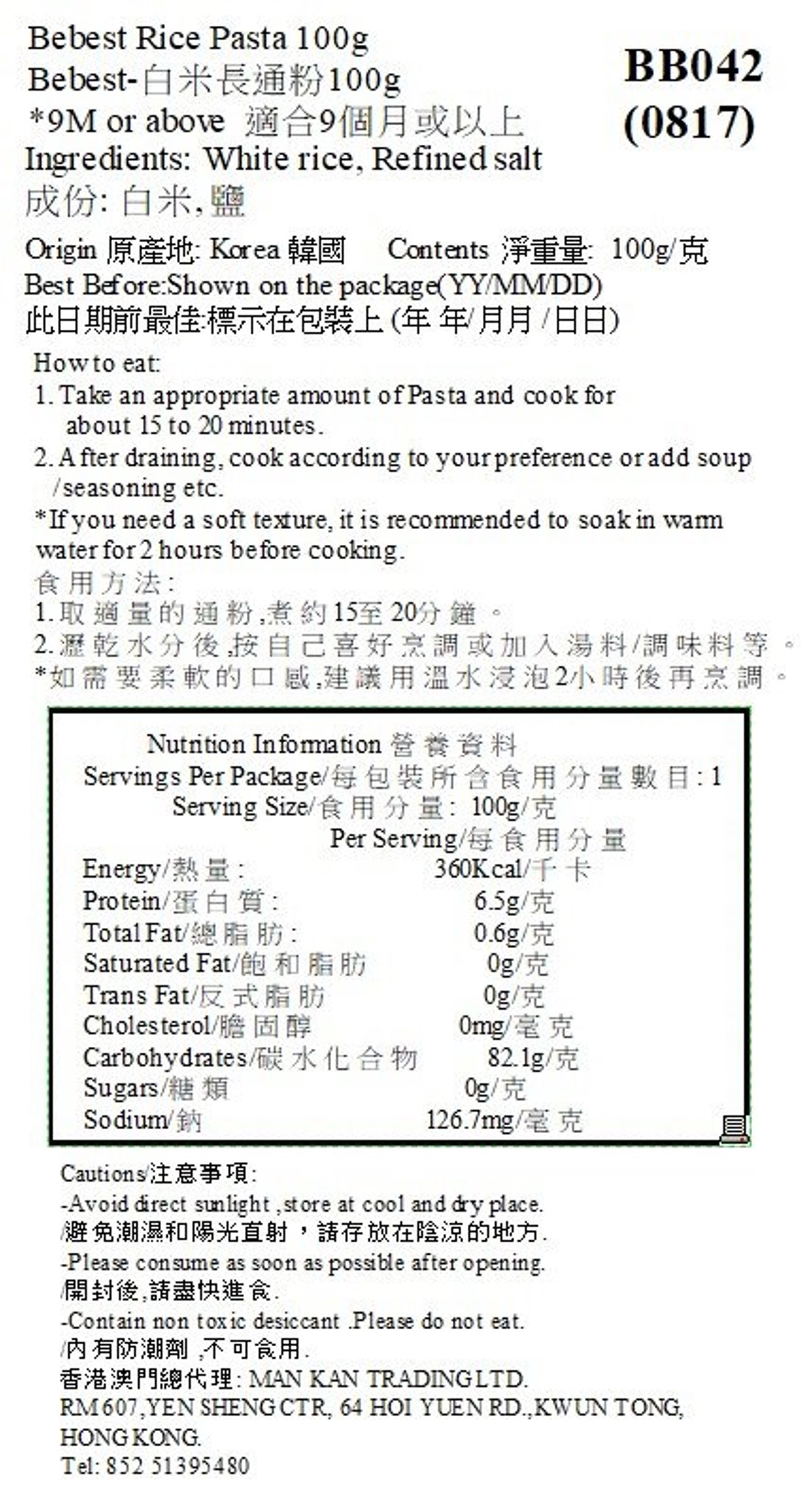 (新品8折優惠) 韓國 Bebest - 白米長通粉100g 9M+