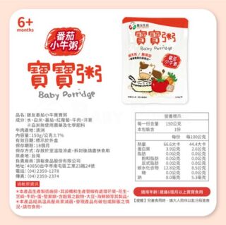 台灣飯友生技 番茄小牛寶寶粥 (150g) 4包/盒 (7M+)
