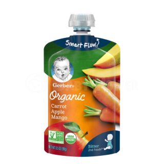 (超級精選優惠 - $108/6件!) 美國Gerber 嘉寶 有機果蓉胡蘿蔔蘋果芒果3.5安士 [香港行貨]