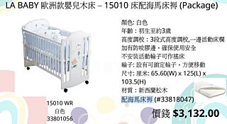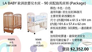 LA BABY 90 歐洲款嬰兒床 [白色] (配海馬床褥) (預訂3-5天)