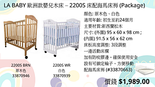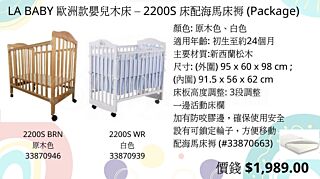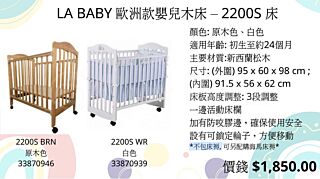 LA BABY 2200S 歐洲款嬰兒木床 (附海馬牌床褥) [原木色](預訂3-5天)