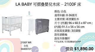 LA BABY 可摺疊嬰兒木床 – 2100F 床 (配海馬床褥) (預訂3-5天)