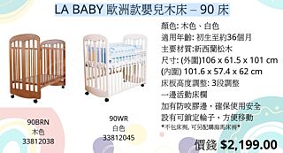 LA BABY 90 歐洲款嬰兒床 [白色] (不包床褥) (預訂3-5天)