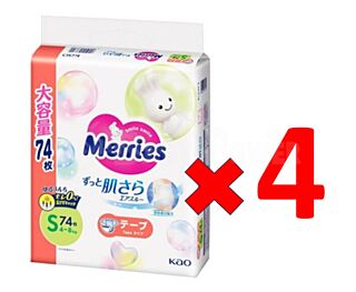 (原箱優惠)日本花王Merries嬰兒紙尿片 (細碼/4~8kg) S74片裝 x4