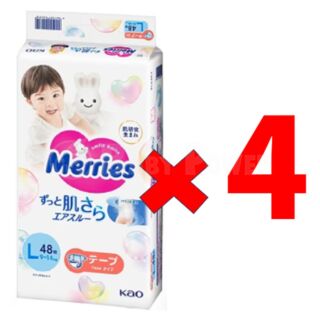 (原箱優惠) 日本花王Merries嬰兒紙尿片x4包(大碼/L48)