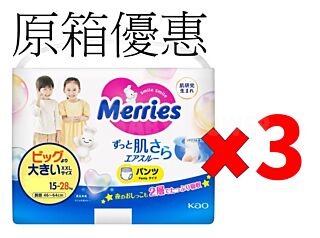 (原箱優惠) 日本花王Merries嬰兒學習褲 x3包 (大碼/L54)