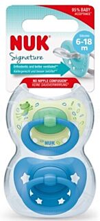 德國 NUK Signature 印花矽膠按撫奶咀連盒2個裝(0-6M)(男/女)