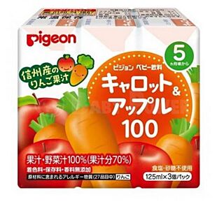 (無添加砂糖、不含色素、防腐劑及香料) Pigeon 5個月起嬰兒 胡蘿蔔蘋果汁 125ml x 3包庄