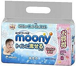 (現金自取$89/包) 日本Unicharm Moony 嬰兒如廁用濕紙巾 50 片一包(8包庄)[可放入廁所沖走]