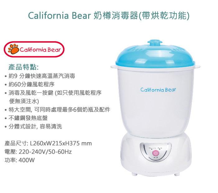 (超級精選優惠! 清貨需搭單一起送)California Bear 奶樽消毒器(帶風烘功能)