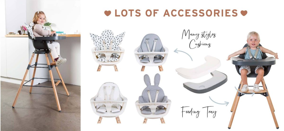 • 提供多種高度:可調式至 2 種餐椅高度:75 cm 的標準餐椅和 50 cm 的兒童餐椅。 可另購買長木腳套組加高