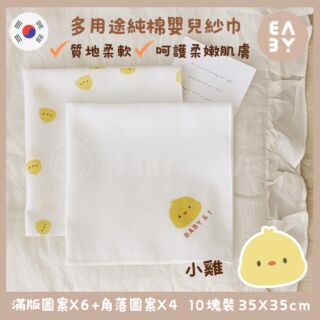 [韓國製] BABY & I 純棉嬰兒紗巾-小雞 [10塊裝] (35x35cm)