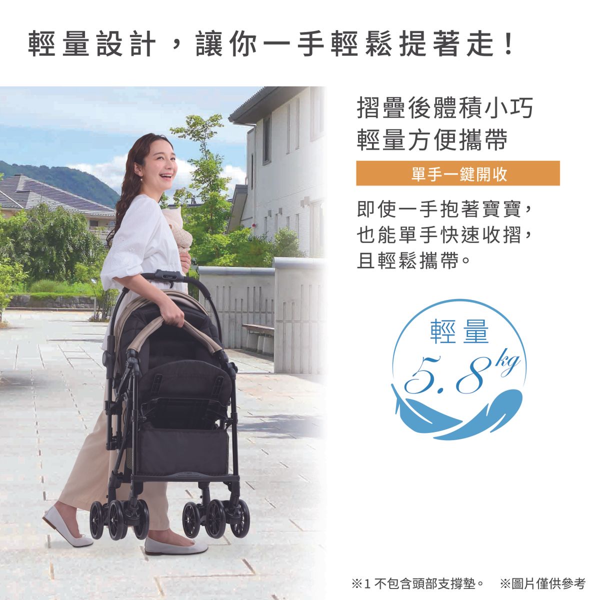 - 輕量5.8kg, 單觸 5點式安全帶