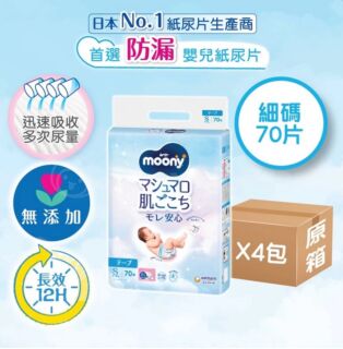 (原箱優惠)日本Unicharm MOONY超透氣紙尿片細碼70片-(4-8kg)x4
