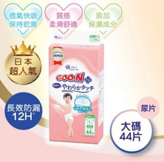 (現金自取 $95x1/$94x2) [香港行貨] 日本大王 GOO.N 柔觸肌嬰兒紙尿褲大碼44片(大碼/9-14kg)