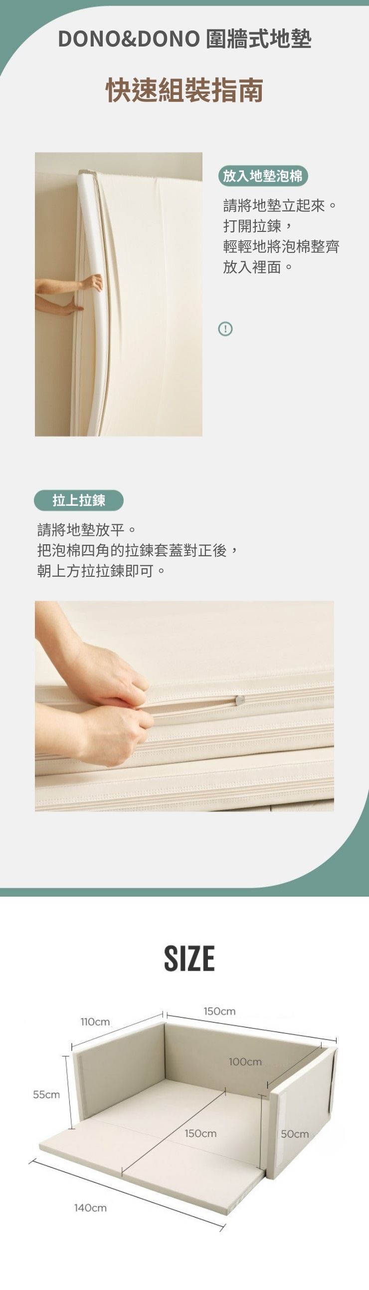 DONO&DONO - 圍牆式地墊(淺卡其)-150 X 110 X 55 cm (預訂3-5日)