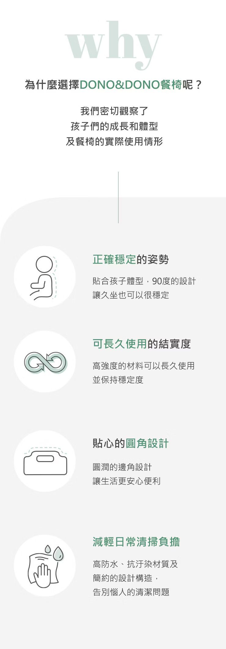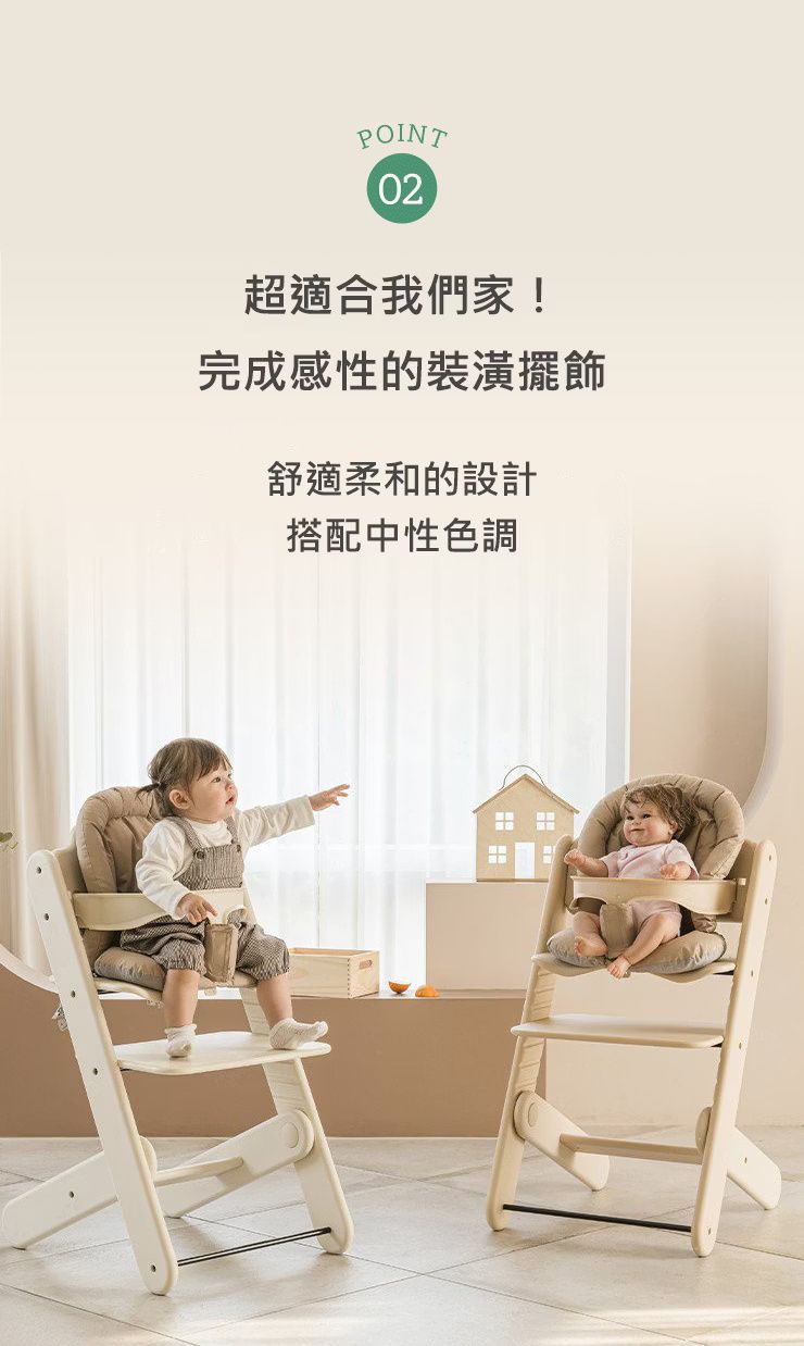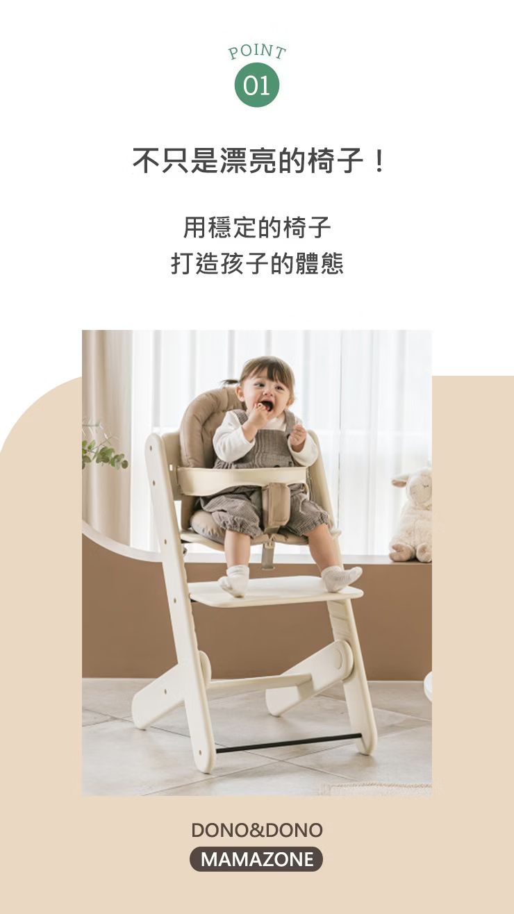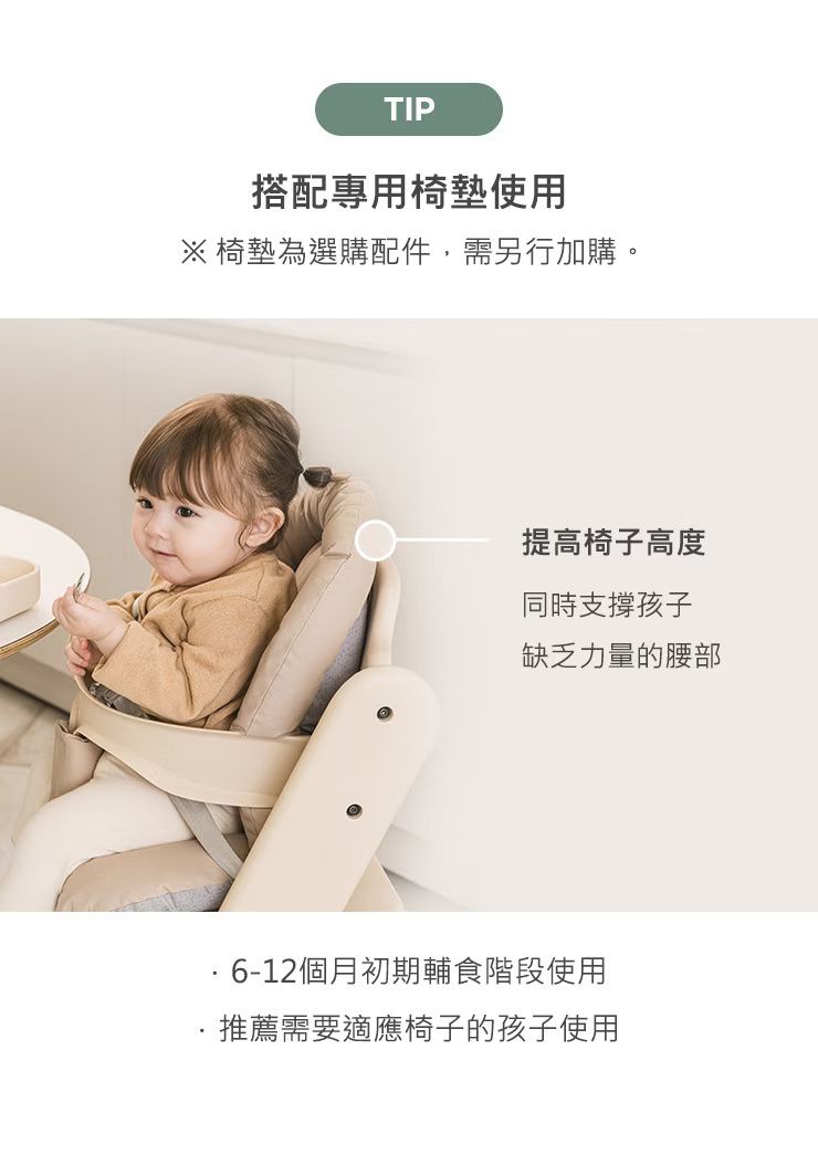 可配舒適坐墊:可換不同款式坐墊或DONO&DONO專用椅墊,讓您的寶寶倍感舒適安穩