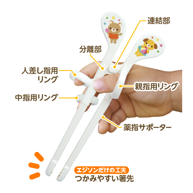 ●只需要將手指放入圈圈中即可正確使用,讓孩子自然而然學會正確的筷子使用方法!