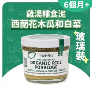 Bebby - 雞湯輔食泥 - 西蘭花木瓜和白菜 90克 - 6個月bb加固期(玻璃裝)