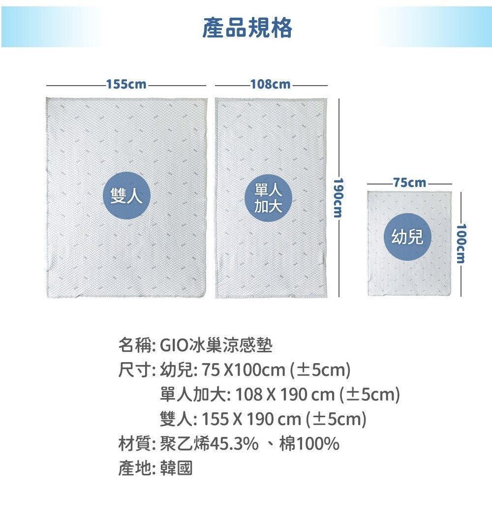 韓國GIO 冰巢涼感墊 (白色) (75x100cm)