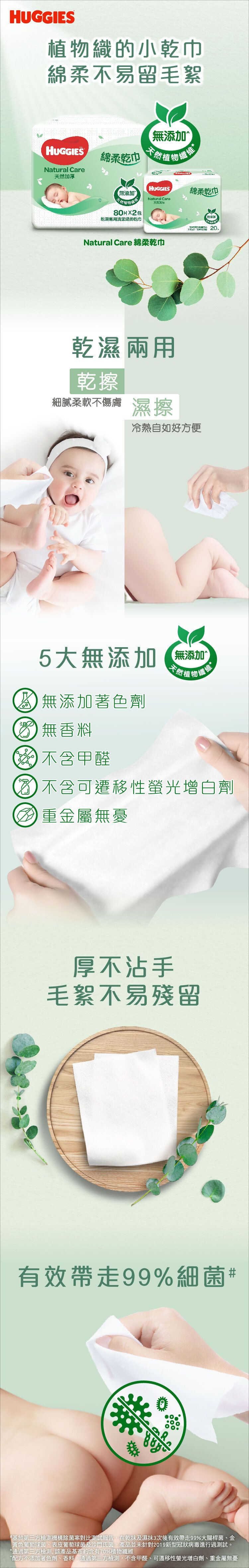 HUGGIES - 綿柔乾巾80片孖裝 (天然植物纖維, 比媲清潔棉, 無添加, 乾濕兩用)