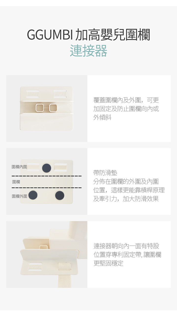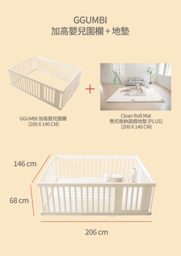 .可配合 GGUMBI加高嬰兒圍欄一起使用