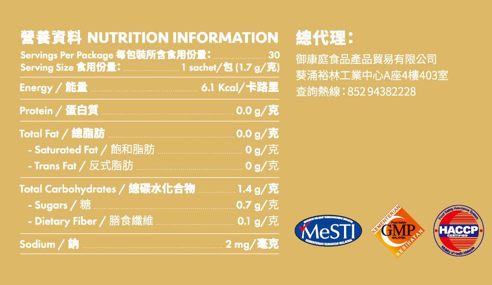 採用馬來西亞專利菌株培育技術,經GMP標準科學栽種與活性成分穩定化處理,每條粉包含