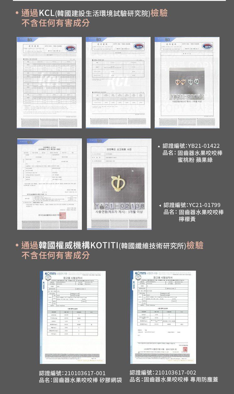 - 牙膠及水果網 : 白金矽膠 (食品級) (-20°C~190°C)