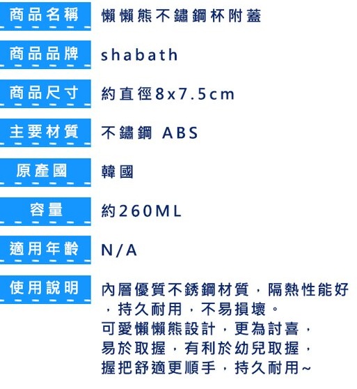 韓國製 鬆弛熊 不鏽鋼杯附蓋學習杯 260ml