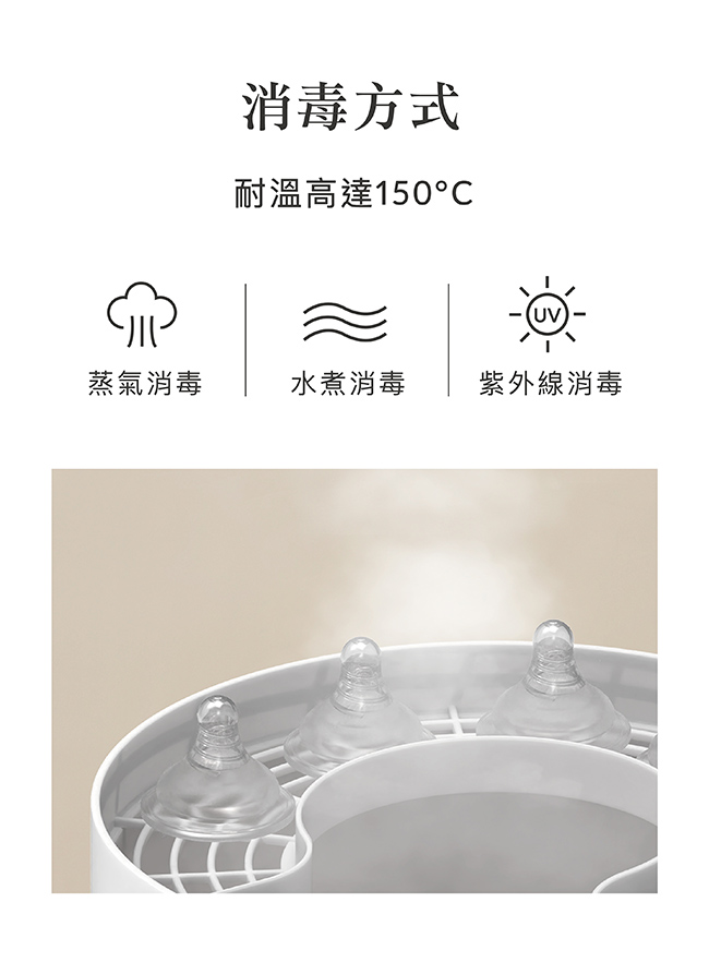 2.欲使用蒸氣、紫外線、微波...等消毒器,請參照各廠牌消毒器使用說明書。