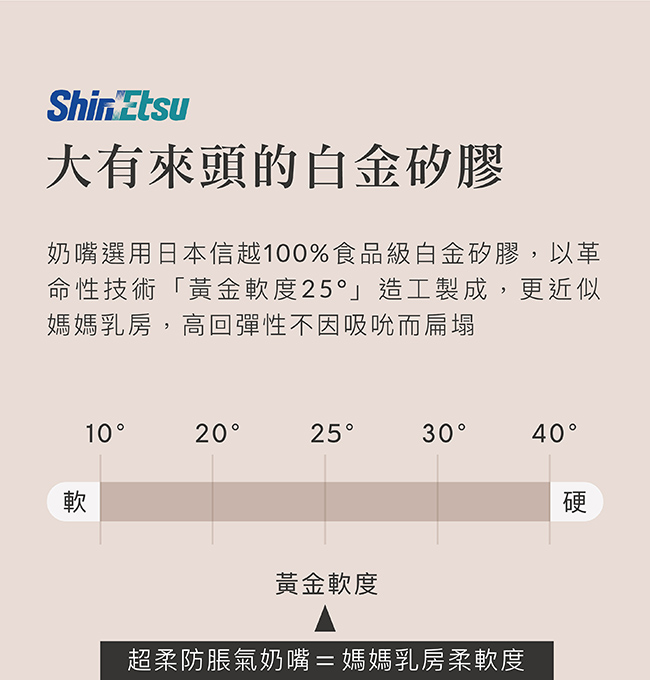 3.選用日本信越100%食品級白金矽膠,高回彈性不因吸吮而扁塌。